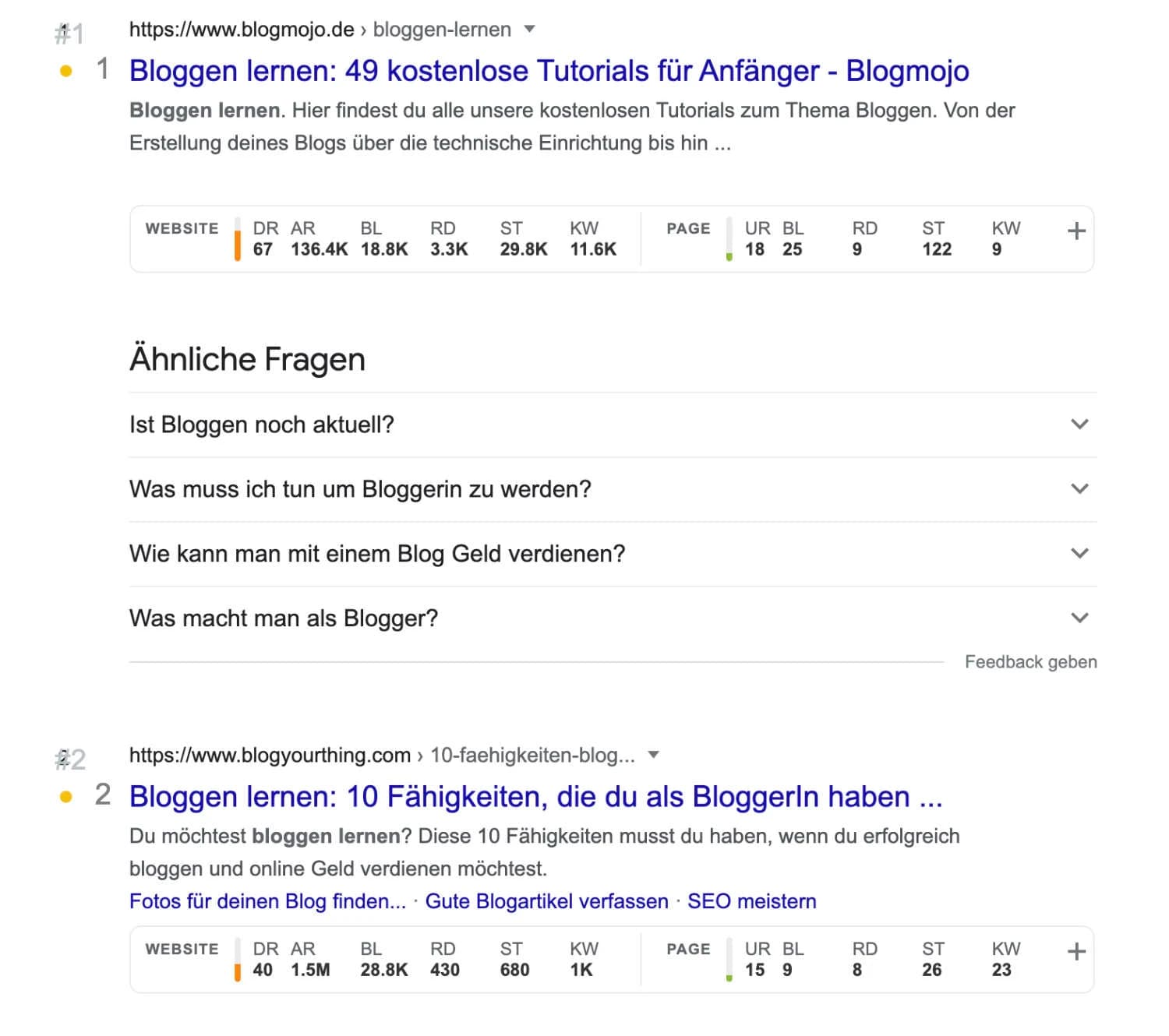 Eine tolle Extension, wenn du direkt in den SERPs nach neuen Themen für deinen Blog suchst und Konkurrenten analysieren möchtest!