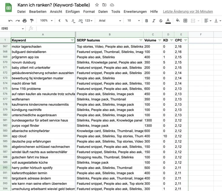 Für die allermeisten Keywords in der Liste solltest du mit einem gut optimierten Blogartikel oder einer gut optimierten Landing-Page in die Top 10 oder sogar die Top 5 kommen können. 💪