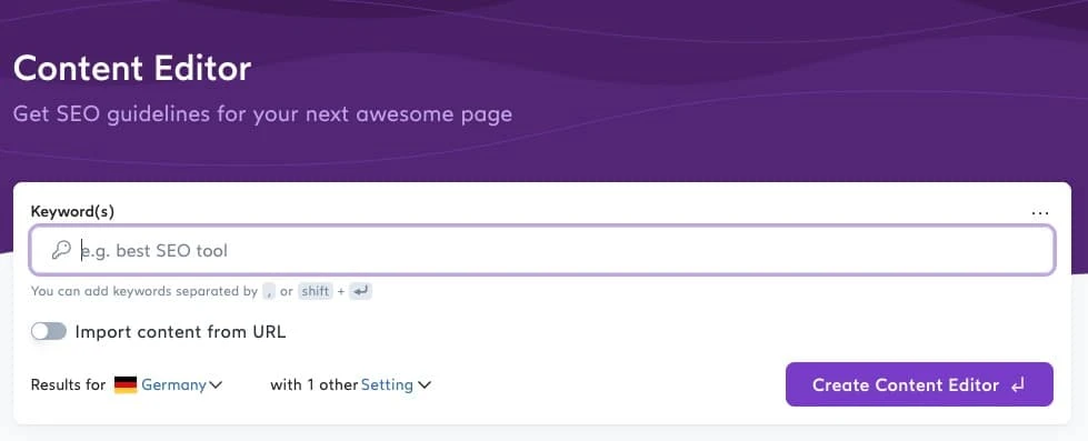 Nützliche Funktionen wie der Content Planner, Content Editor, SERP Analyzer, Keyword Research oder Audit, helfen ungemein bei der Keyword-Recherche und anschließenden -Optimierung.
