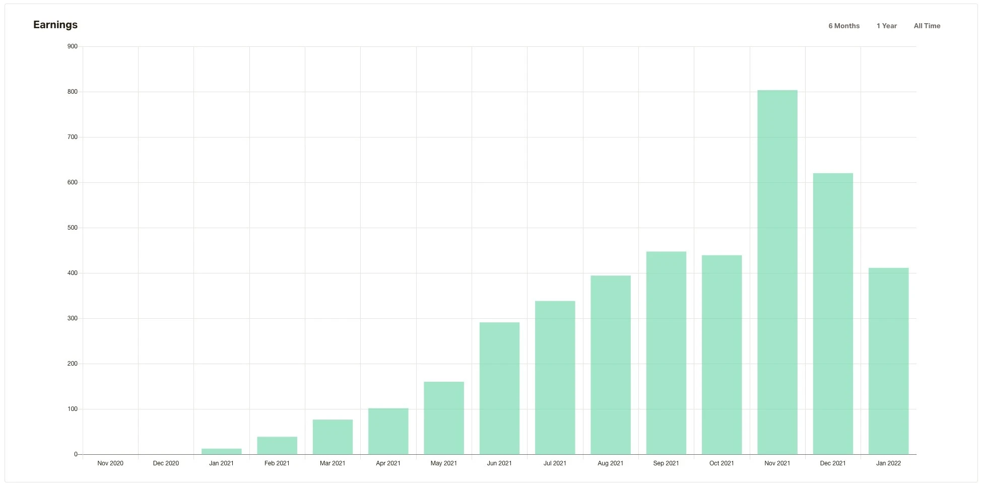 Hier siehst du die Entwicklung eines Einkommens bei Patreon: