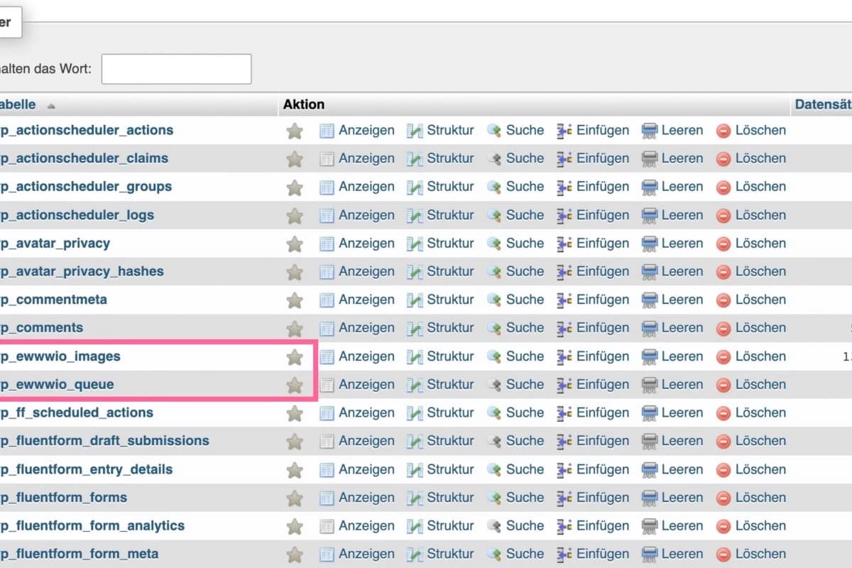 In folgendem Beispiel könntest du z. B. nach ewwwio_images in der Liste suchen: